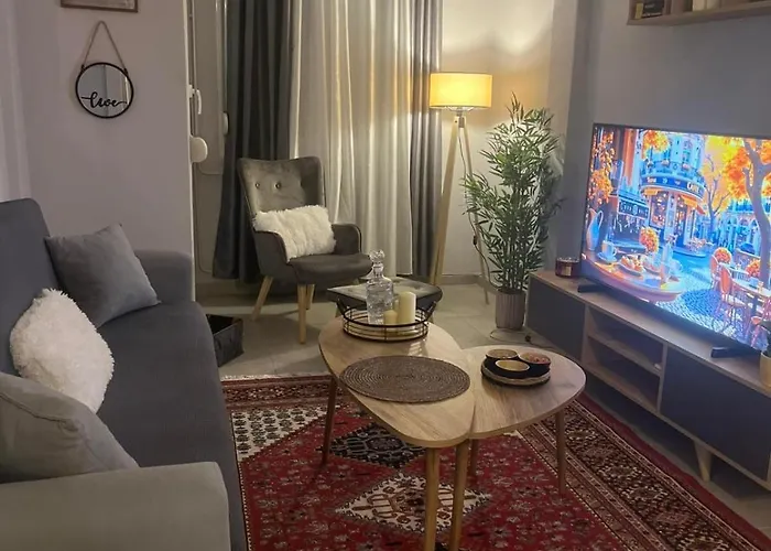 Com cozinha equipada como parte das suas comodidades de auto-atendimento, o apartamento também providencia aos hóspedes zona de refeições para desfrutarem das suas refeições. Os hóspedes também podem pegar um autocarro na estação de autocarros Karipio Melathro, situada a 450 metros de distância para explorar o resto de Tessalónica.